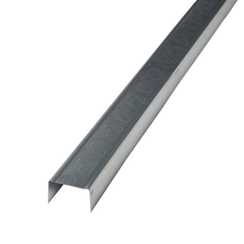 Perfil en "U" reforzado para trasdosados, tabiques y techos, "P" de Pladur® estampada en el alma para facilitar su reconocimiento en obra, ancho nominal de 71 mm, alas de 47 mm, acero laminado en frío de 0,64 mm, galvanizado Z275.